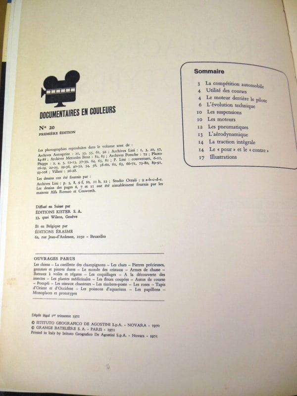 Колекційне видання 1971 року французькою мовою, присвячене світові автоспорту – Формулі-1 та спортивним прототипам.