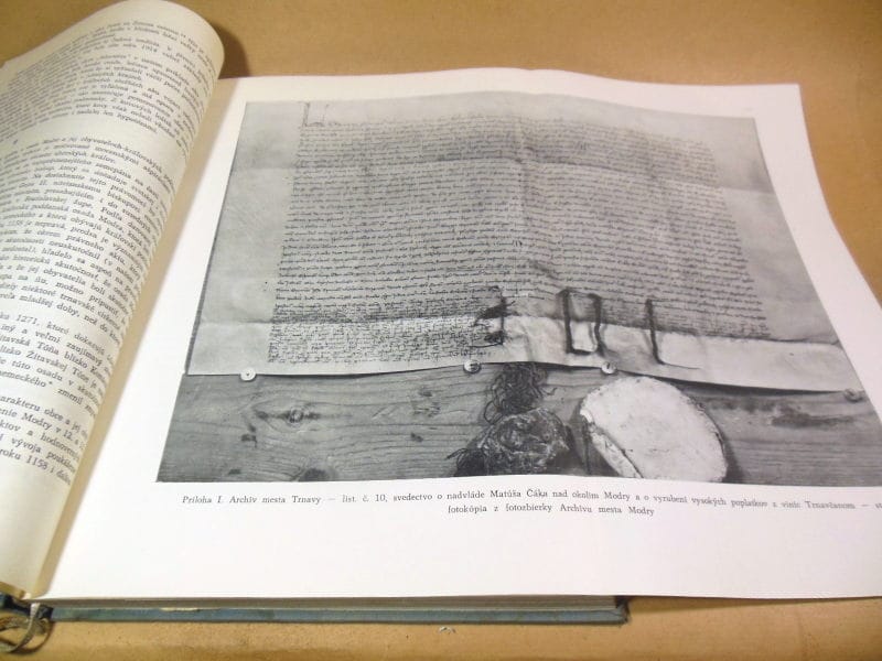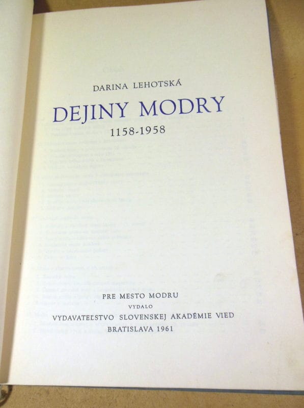 Унікальне, рідкісне видання 1961 року словацькою мовою від Видавництва Словацької академії наук (Братислава). Книга присвячена історії міста Модра (біля Малих Карпат) за період 1158–1958 років.