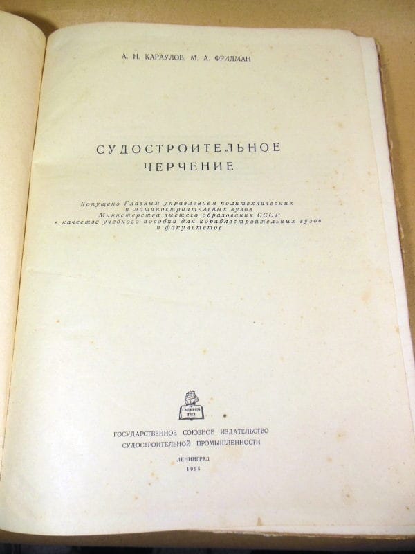 А. Н. Караулов, М. А. Фридман. Судостроительное черчение. Государственное союзное издательство судостроительной промышленности, Ленінград 1955. Переплет: твердый, энциклопедический формат.