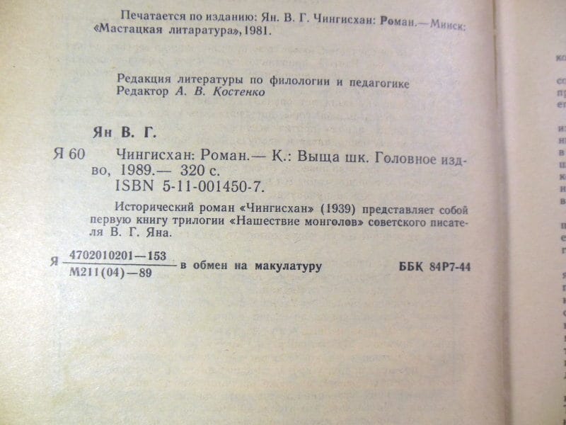 Ян Василий Григорьевич (1875 — 1954) — советский писатель, автор исторических романов. Лауреат Сталинской премии первой степени (1942). В 1901-1904 гг. служил инспектором колодцев в Туркестане, где изучал восточные языки и жизнь местного населения. Главное сочинение писателя — историческая трилогия «Нашествие монголов», в которую входят романы «Чингиз-хан» о завоевании Центральной Азии (1939), «Батый» о завоевании Северо-Восточной Руси (1942) и «К „последнему морю“» о завоевании Южной Руси и походе дальше на запад до Адриатического моря. Тема борьбы предков народов СССР с монгольскими завоевателями в XIII веке оказалась очень актуальной в годы Великой Отечественной войны.
