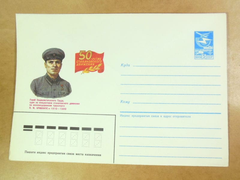 Країна СРСР Рік 1985 Художник: Г. Кравчук, А. Корнєєв Тематика Видатні люди, Залізниця, Стахановський рух Стан Чистий Розмір: 115×163 мм