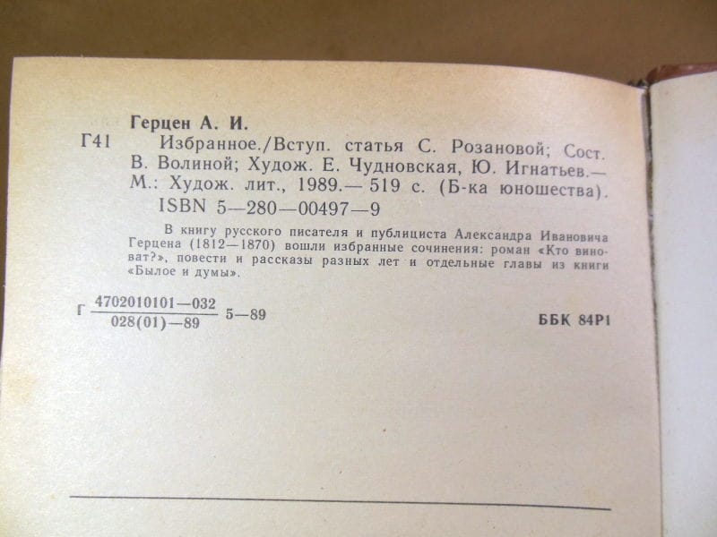 Герцен А.И. Избранное. Вступит. ст. С.А. Розановой. Сост. В.Б. Волина. Худ. Е. Чудновская, Ю. Игнатьев. (Библиотека Юношества). М.: Худ. лит-ра. 1989г. 519 с., илл., портрет. Твердый переплет, обычный формат.