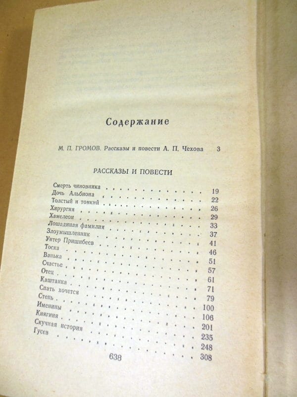 В сборник включены известные произведения А. П. Чехова разных периодов его творчества: Хирургия, Хамелеон, Унтер Пришибеев, Каштанка, Степь, Скучная история, Человек в футляре, О любви, Дама с собачкой и др.