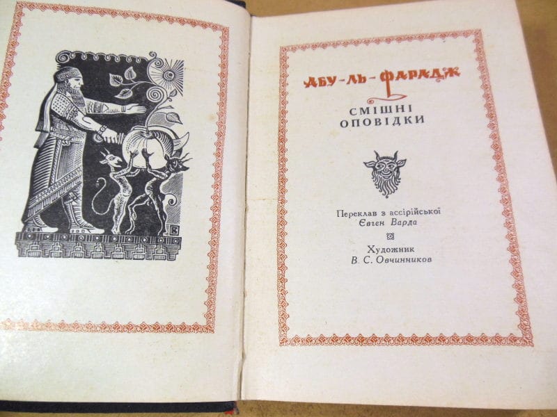 Абу-ль-Фарадж. Смішні оповідки. Вступне слово, переклад з ассірійської Євген Варда. Художник В.Овчинников. Київ Дніпро. 1972г. 318 с., іл. Палiтурка: тверда, зменшений формат.