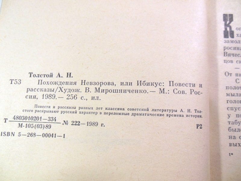 Толстой А. Похождения Невзорова, или Ибикус. Повести и рассказы. Художник В. Мирошниченко. М. Советская Россия. 1989г. 256 с., илл. Твердый переплет, Обычный формат.
