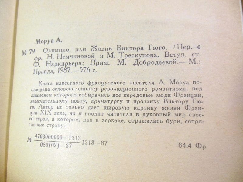 Андре Моруа. Олимпио, или жизнь Виктора Гюго М. Правда 1987г. 576 с. твердый переплет, обычный формат.