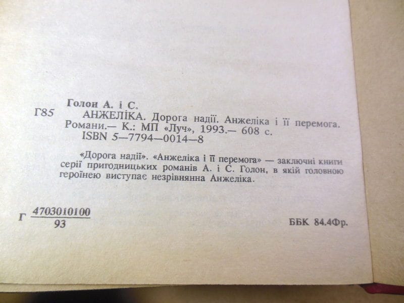 Анн Голон, Серж Голон. Анжелика. Дорога надежды. Анжелика и ее победа. Киев: МП «Луч», 1993 г. 688с. обычный формат
