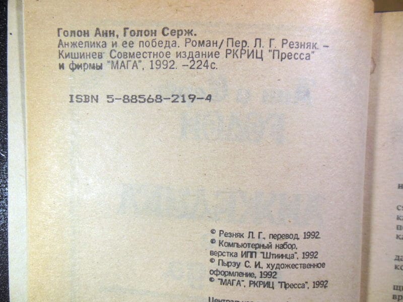 Голон, Анн и Серж. Анжелика и ее победа. Роман. Пер. с фр. Л.Г. Резняк. Кишинев Пресса, МАГА. 1992г. 224 с. Твердый переплет, обычный формат.