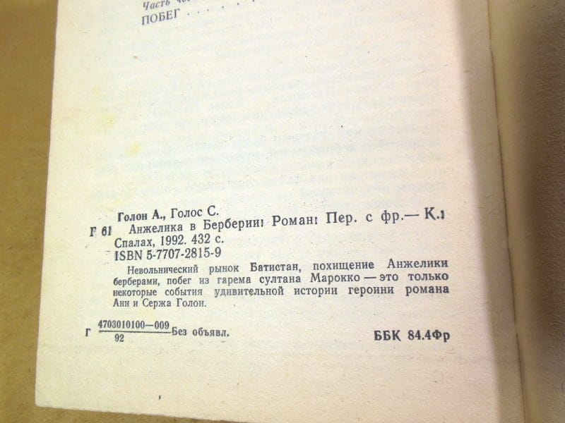 Голон Анн и Серж. Анжелика в Берберии. Роман. Киев СпалахЛТД, 1992 г., 432 с., Твердый переплет, Обычный формат.