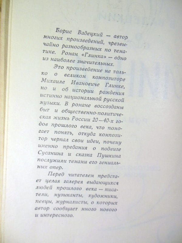 Это произведение не только о великом композиторе, но и об истории рождения истинно национальной русской музыки. В романе воссозданы быт и общественно-политическая жизнь России 20-40-х годов прошлого века, что помогает понять, откуда композитор черпал свои идеи, почему именно предание о подвиге Сусанина и сказки Пушкина послужили темами его гениальных опер.