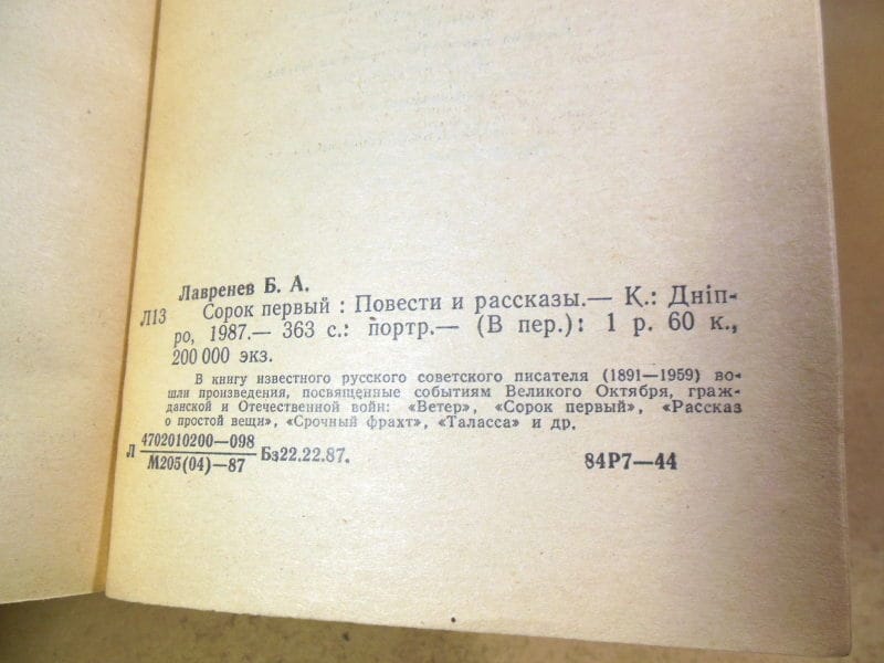 В книгу известного советского писателя Бориса Лавренева (1891—1959) вошли произведения, ставшие классикой героико-революционной прозы. Центральное место занимает повесть «Сорок первый» — трагическая история любви девушки-снайпера Марютки и белого офицера, разворачивающаяся на фоне Гражданской войны. Также в сборник включены повести «Ветер», «Рассказ о простой вещи» и рассказы «Срочный фрахт», «Таласса» и другие произведения, посвященные событиям Октября и Великой Отечественной войны.