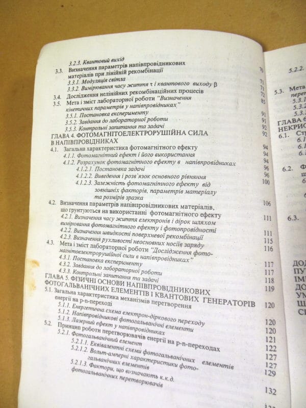 У пропонованому виданні описано основні нерівноважні явища, що реалізуються у напівпровідниках. Подано зміст і визначено мету відповідних лабораторних робіт, що можуть стати додатком до курсу лекцій “Фізика нерівноважних явищ у напівпровідниках”. Книга визначена як навчальний посібник для студентів, які спеціалізуються в галузі фізики напівпровідників і напівпровідникових приладів.