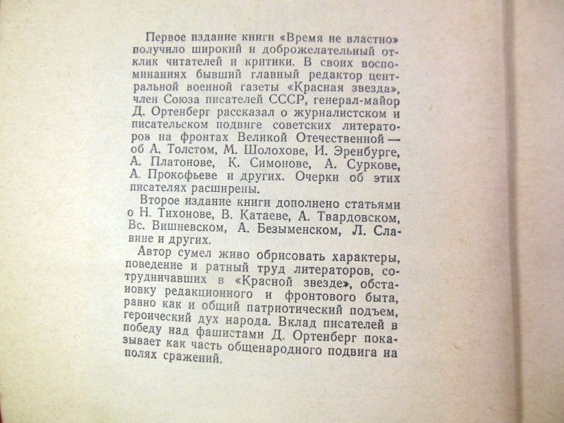 Ортенберг Д. Время не властно. Писатели на войне Изд. 2-е., расшир. и дополн. М. Советский писатель 1979г. 623 с., вкладки фотоилл. твердый переплет, Обычный формат.