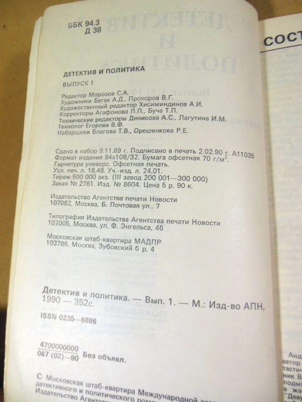 Первый выпуск альманаха «Детектив и политика» за 1990 год открывает новую серию публикаций от ассоциации под руководством Юлиана Семенова.
