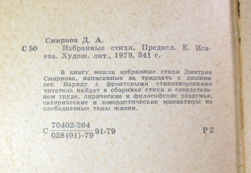 В книгу вошли избранные произведения Дмитрия Смирнова, созданные на протяжении более чем тридцати лет. Сборник включает фронтовую лирику, стихи о созидательном труде, глубокие философские раздумья, а также сатирические и юмористические миниатюры на злободневные темы. Издание открывается предисловием Е. Исаева и дополнено портретом автора.