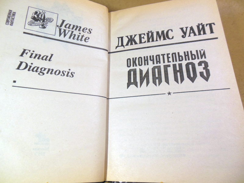 Уайт Дж. Окончательный диагноз. Серия: (Координаты чудес. Современная фантастика). Роман. Перевод с англ. Н. Сосновской. М. АСТ. 1999г. 416 с. Твердый целлофанированный переплет, Обычный формат.