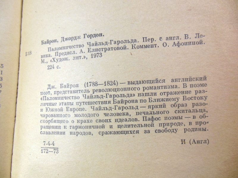 Образ Чайльд-Гарольда, разочарованного в идеалах своего времени, стал нарицательным и породил целое направление в мировой литературе — «байронизм». Издание 1973 года снабжено классическим переводом и будет интересно как студентам-филологам, так и всем поклонникам высокой классической поэзии.