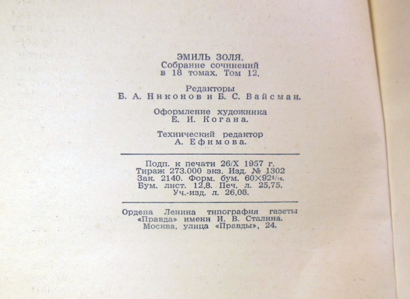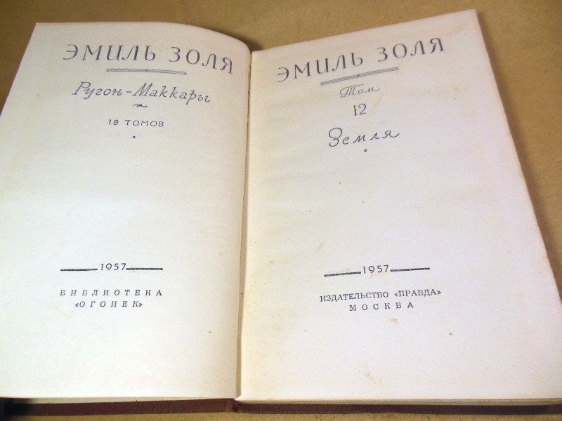 Эмиль Золя. Собрание сочинений в 18 томах. Том 12. Земля. М.: Правда, 1957. 412 с. Твердый переплет, слегка увеличенный формат.