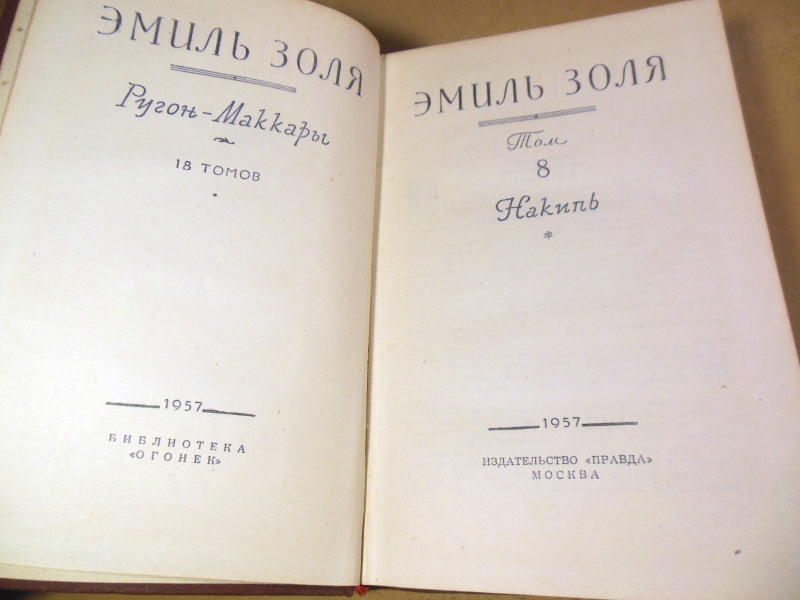 Эмиль Золя. Собрание сочинений в 18 томах. Том 8. Накипь. М.: Правда, 1957. 368 с. Твердый переплет, слегка увеличенный формат.