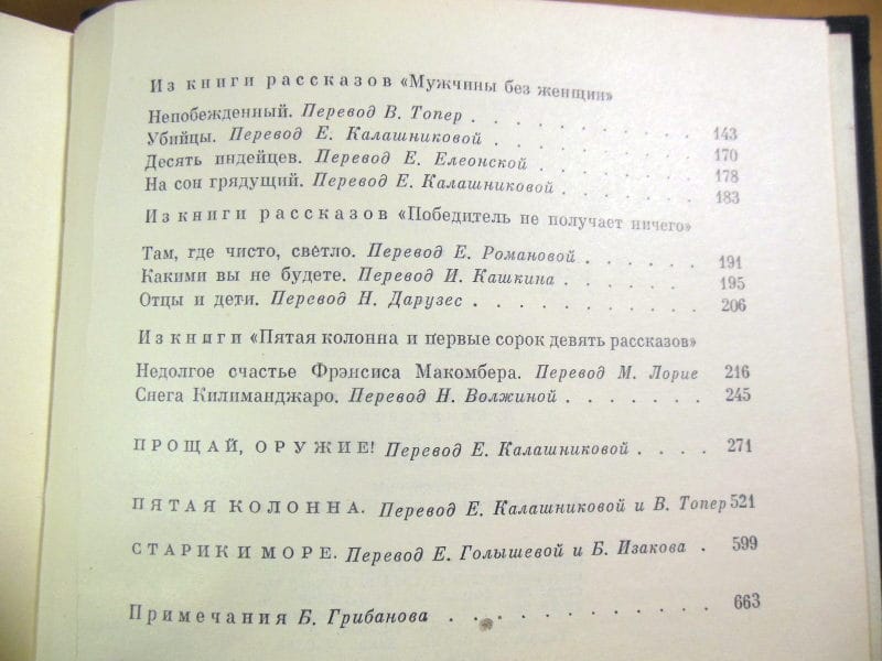Знакомство русского читателя с творчеством Э. Хемингуэя началось в 1934 году. Сам писатель характеризовал свое творчество как помощь людям посредством беспощадной правды о жизни. Писатель хотел проникнуть в самую суть явлений, понять последовательность фактов и действий, вызывающих те или иные чувства, и так написать о данном явлении, чтобы это оставалось действенным и через год, и через десять лет. В книгу вошли: рассказы, романы `Прощай, оружие!`, `Пятая колонна`, `Старик и море`.