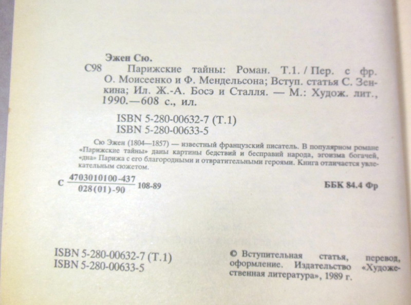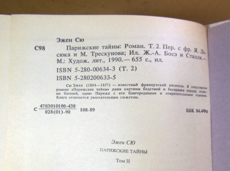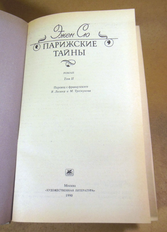 Сю Эжен. Парижские тайны. В двух томах. М. Художественная литература. 1990г. 608 + 655 стр., с илл. Твердый переплет, Обычный формат.