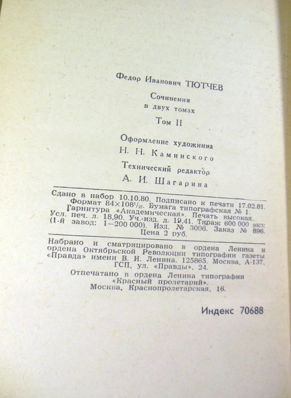Ф. И. Тютчев. Сочинения в двух томах. Том 2. М.: Правда, 1980. 352 с. Твердый переплет, обычный формат.