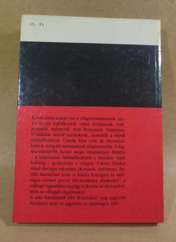 Aki e könyv képeit végignézi, s a szövegét elolvassa, nemcsak a világtörténelem egyik legérdekesebb és legnagyobb hatású alakjának életútját ismerheti meg, hanem képet kap a XVIII. század végi és a XIX. század eleji Európáról is. Fekete Sándor nem a legendák Napóleonát mutatja be, hanem a hús-vér embert, aki rendkívüli tehetségével és akaraterejével egy szétzilált országból világbirodalmat szervezett, de akit végül elvakított a hatalomvágy. A kötetet gazdag képanyag — korabeli festmények, metszetek és térképek — teszi szemléletessé.