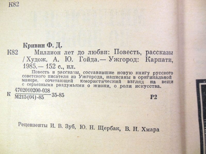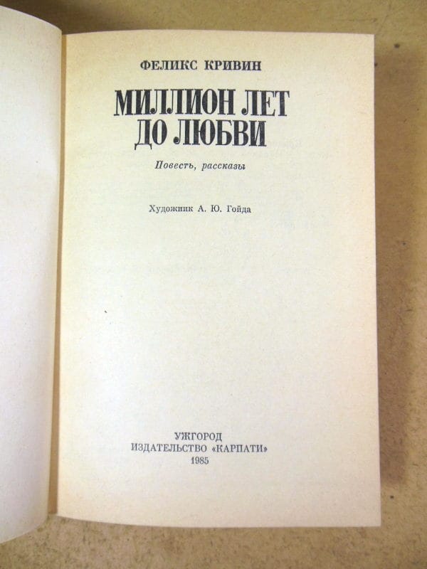 Кривин Ф. Миллион лет до любви. Повесть, рассказы. Художник А.Гойда. Ужгород Карпати 1985г. 152 с., ил. Переплет: Твердый, уменьшенный формат.