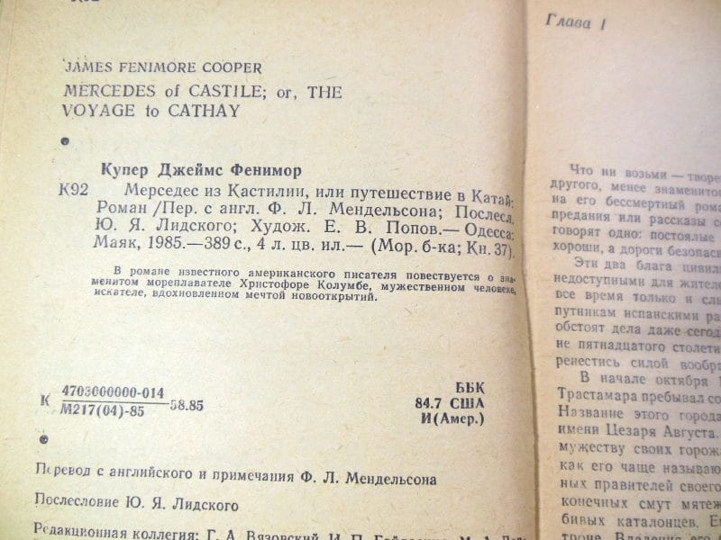 Фенимор Купер. Мерседес из Кастилии, или Путешествие в Катай Роман. (Морская библиотека, кн.37) Одесса Маяк 1985г. 389 с., илл. твердый переплет, обычный формат.