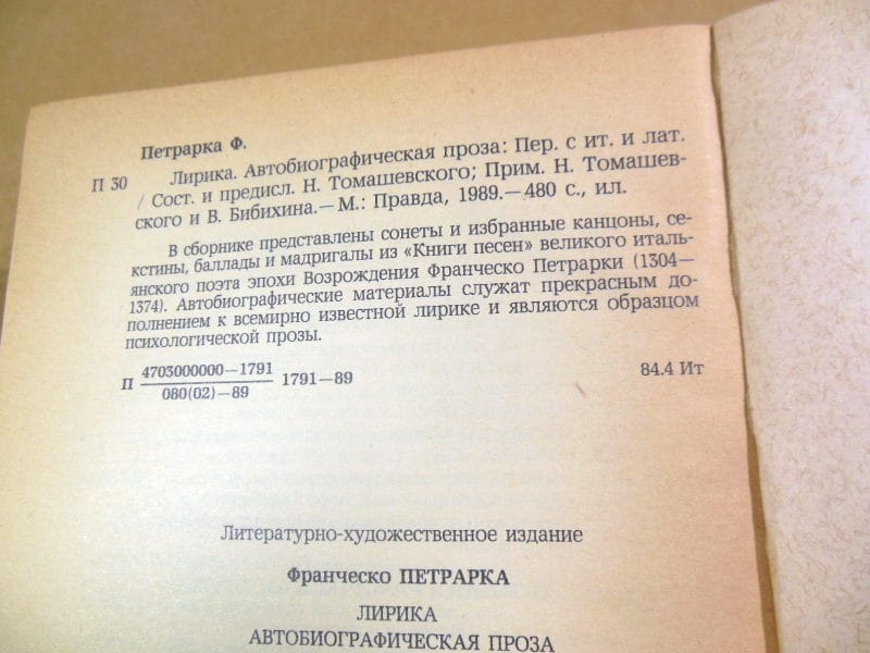 В сборнике представлены сонеты и избранные канцоны, секстины, баллады и мадригалы из Книги песен великого итальянского поэта эпохи Возрождения Франческо Петрарки (1304 — 1374). Автобиографические материалы служат прекрасным дополнением к всемирно известной лирике и являются образцом психологической прозы.