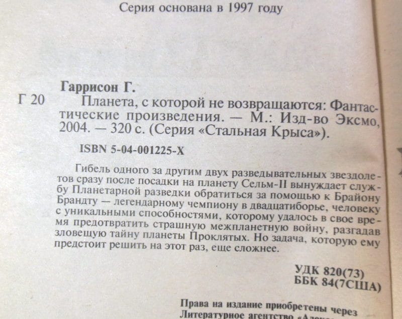 Гарри Гаррисон. Планета, с которой не возвращаются. Серия: «Стальная Крыса». М.: Изд-во Эксмо, 2004. 320 с. Мягкий переплет, Уменьшенный формат.