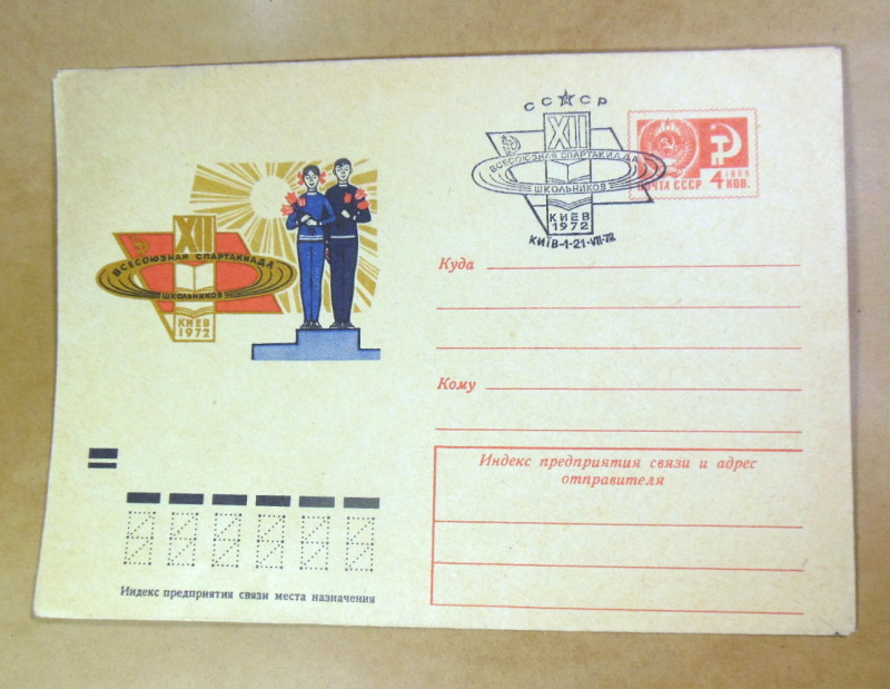 Тематика: Спорт, діти, спартакіада школярів, юні спортсмени, художній штемпель.