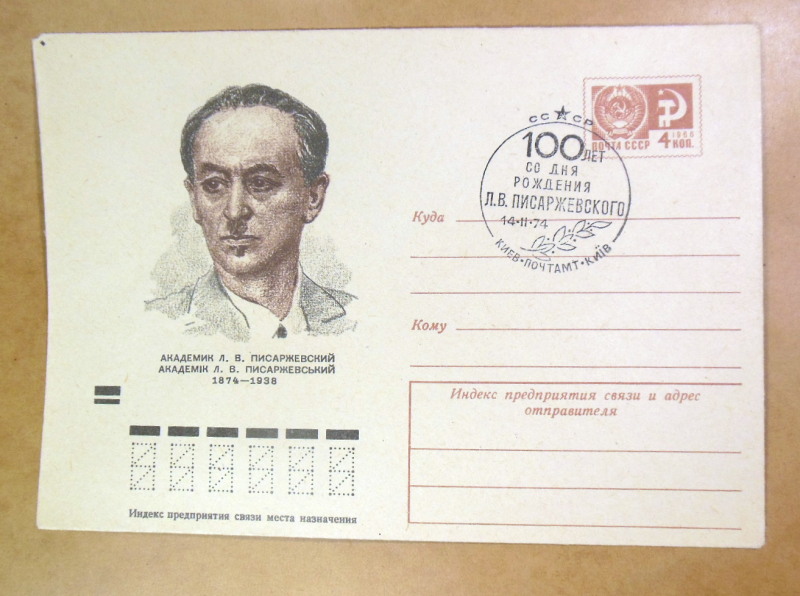• Тематика: Видатні особистості, наука, хімія, академік Лев Писаржевський, ювілеї, художній штемпель.