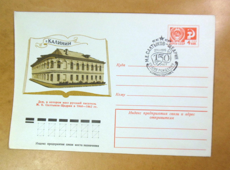 Тематика: Література, письменники, архітектура, Калінін, М. Є. Салтиков-Щедрін, художній штемпель.