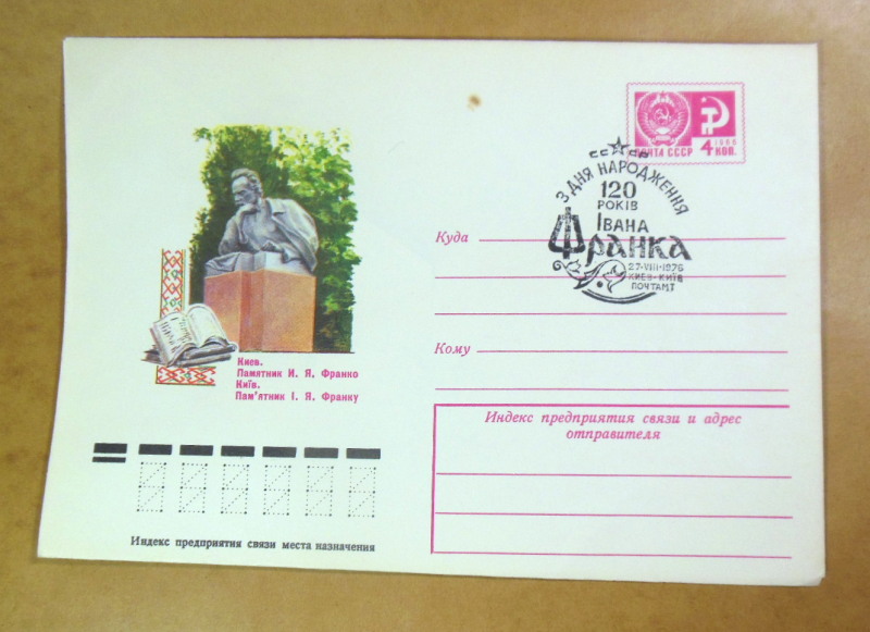 Тематика: Література, Іван Франко, ювілеї, пам’ятники, Київ, художній штемпель.