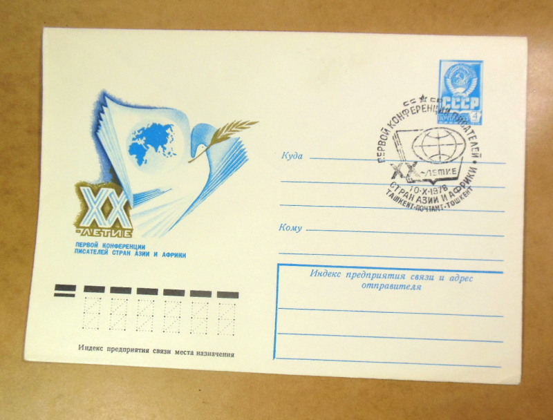 Тематика: Література, міжнародні конференції, голуб миру, земна куля, художній штемпель.