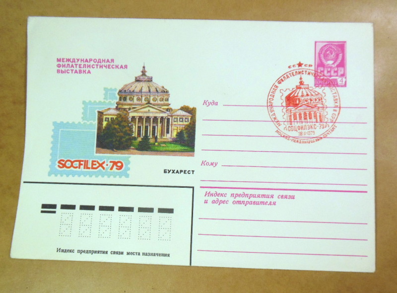 Тематика: Філателія, виставки, Socfilex-79, архітектура, Пашков дім, художній штемпель.
