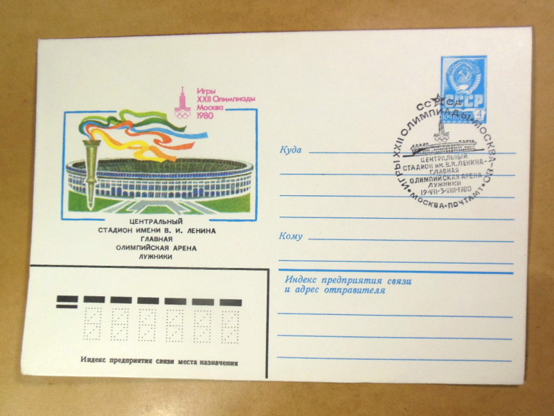 Тематика: Спорт, Олімпіада-80, архітектура, Лужники, художній штемпель.