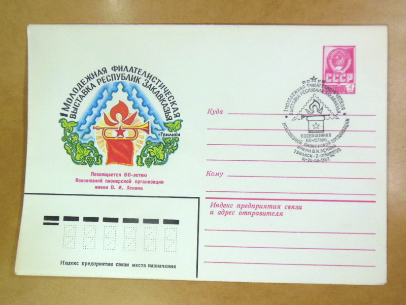 • Тематика: Філателія, виставки, Закавказзя (Грузія, Вірменія, Азербайджан), 60-річчя утворення СРСР, художній штемпель.