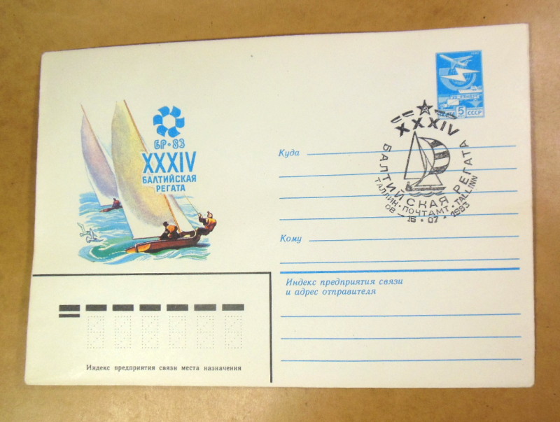 Тематика: Спорт, вітрильний спорт, Балтійська регата, Таллінн, морська тематика, художній штемпель.