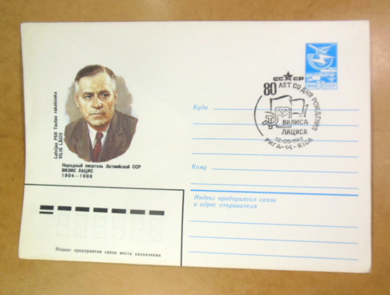 Тематика: Видатні особистості, література, письменники, Вилис Лацис, ювілеї, художній штемпель.