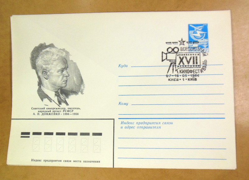 Тематика: Видатні особистості, кінорежисери, Олександр Довженко, кінофестиваль, художній штемпель.