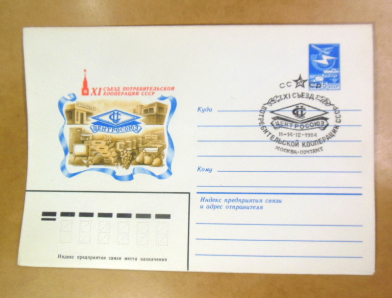 Тематика: Споживча кооперація, Центроспілка, з’їзди, економіка СРСР, художній штемпель.