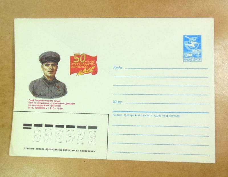 Країна СРСР Рік 1985 Художник: Г. Кравчук, А. Корнєєв Тематика Видатні люди, Залізниця, Стахановський рух Стан Чистий Розмір: 115×163 мм