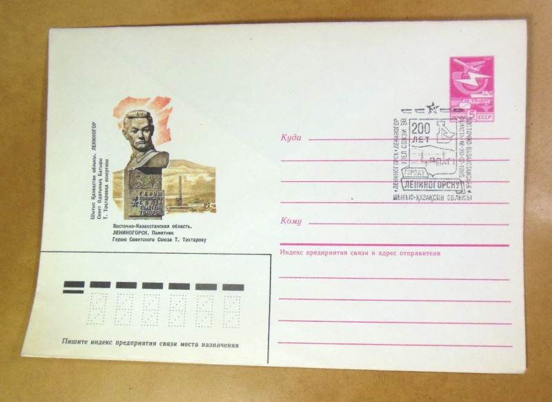 ХМК СРСР 1986. Лениногорск. Памятник Т. Тохтарову (СГ Лениногорск) Ref: k215