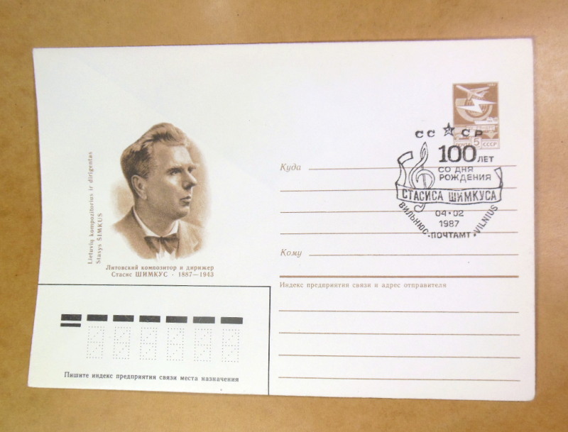 Тематика: Видатні особистості, музика, композитори, Стасіс Шимкус, ювілеї, художній штемпель.