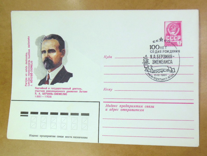 Тематика: Революционеры, государственные деятели, Латвия, юбилеи, художественный штемпель.