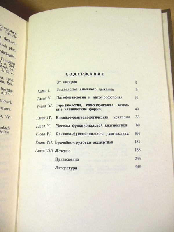 Содержание: 1.Физиология внешнего дыхания. 2.Патофизиология и патоморфология. 3.Терминология, классификация, основные клинические формы. 4.Клинико-рентгенологические критерии. 5.Методы функциональной диагностики. 6.Клинико-функциональная диагностика. 7.Врачебно-трудовая экспертиза. 8.Лечение. Приложения.