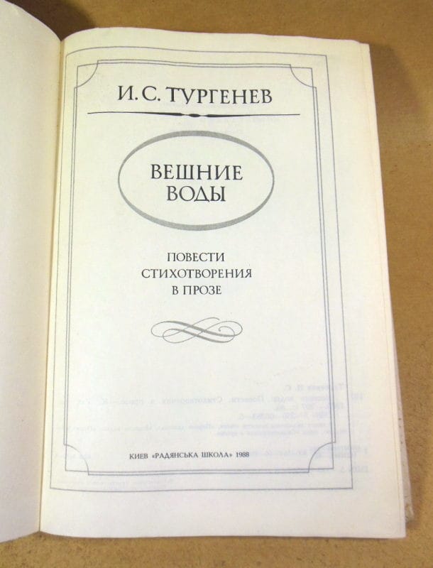 Тургенев И.С. Вешние воды. Повести. Стихотворения в прозе. К. Радянська школа 1988г. 207 с., илл. Переплет: твердый, увеличенный формат.