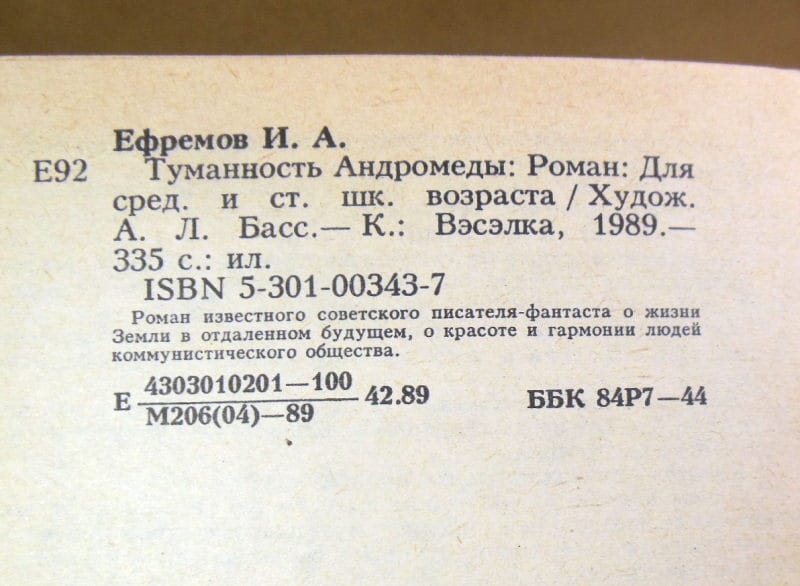 Иван Ефремов. Туманность Андромеды. К.: Вэсэлка, 1989. 335 с.: ил. Тканевый переплет, обычный формат.